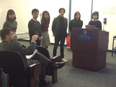 YNU students were able to participate in various lectures at American University, including ‘Peace, Global Security & Conflict Resolution’ with Professor DeRaismes Combes, in which the topic of how we define the end of war in the modern era was discussed. Another fascinating lesson was ‘Cross-cultural Communication’ with Professor Naomi Moland. YNU and AU students talked about the respective stereotypical images of Japan and the USA, and how they deal with those images in their everyday lives.