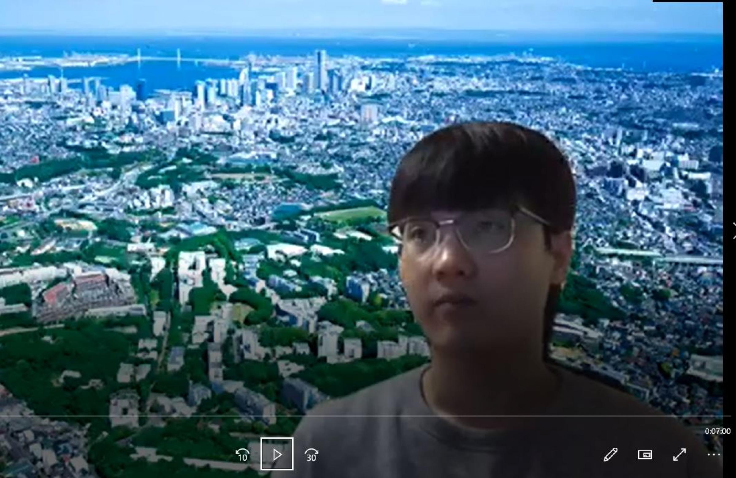 The work on the scenarios was facilitated by YNU full-time faculty Alexander McAulay and Keiko Ishiwata, and by Dr. Perry Howell, a visiting Fulbright Scholar from Florida State University. Starting in May, the three teachers worked with the six students – who worked in three teams of two – as they researched trends in society and economics as the basis for a narrative told from the perspective of visitors from 2070. The students made short films of their scripts which were evaluated by Dr. Craig Batty and Dr. Luke Sharp of UTS. Months of research, writing, re-writing, filming and editing came to fruition in a teleconference session on Friday, October 23 in which Dr. Batty, a Screenwriting expert, and Dr. Sharp, a Japanologist, interviewed the students on their research and writing processes, and then chose a winner from the three films.